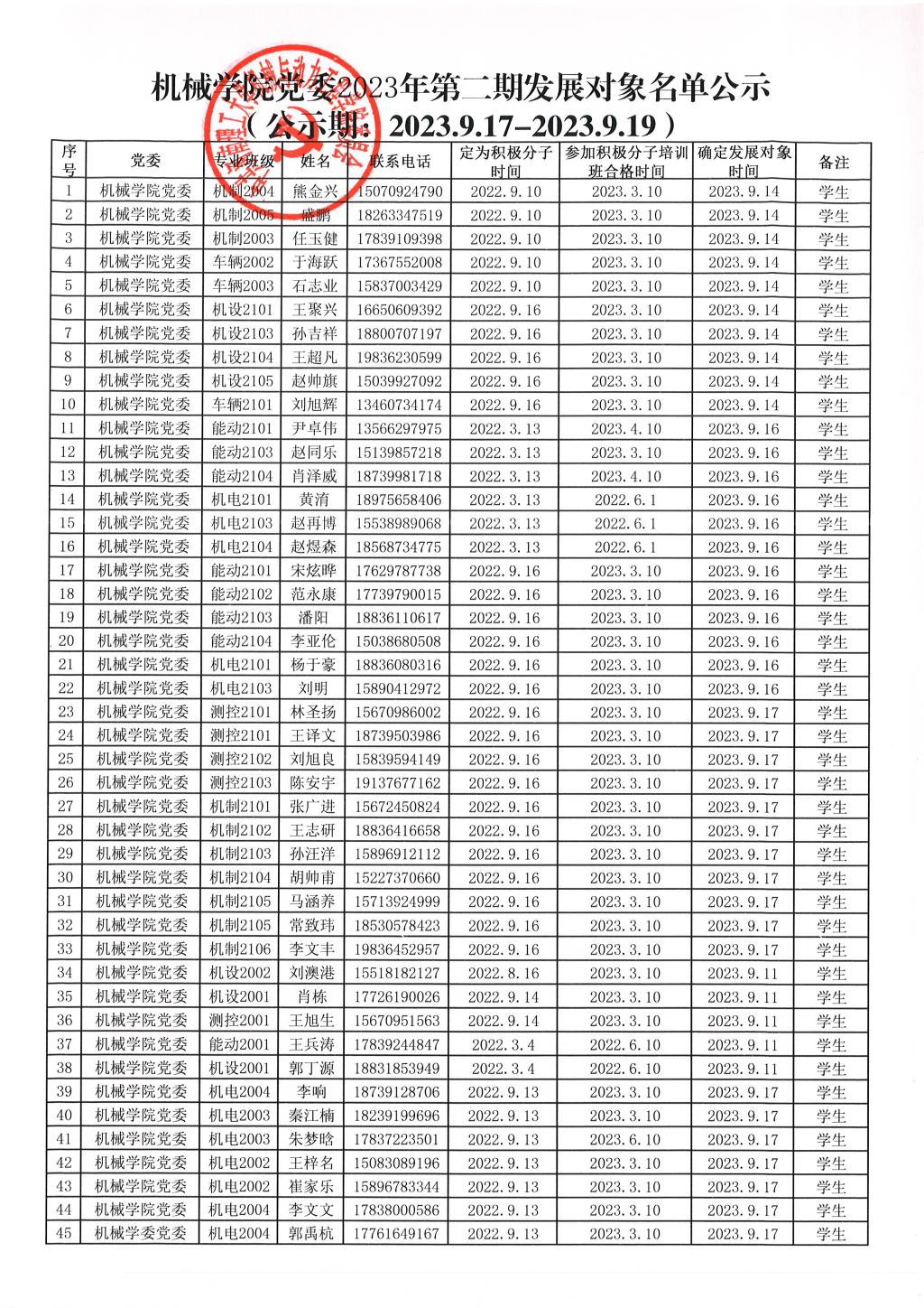 77779193永利官网党委2023年第二期发展对象名单公示
