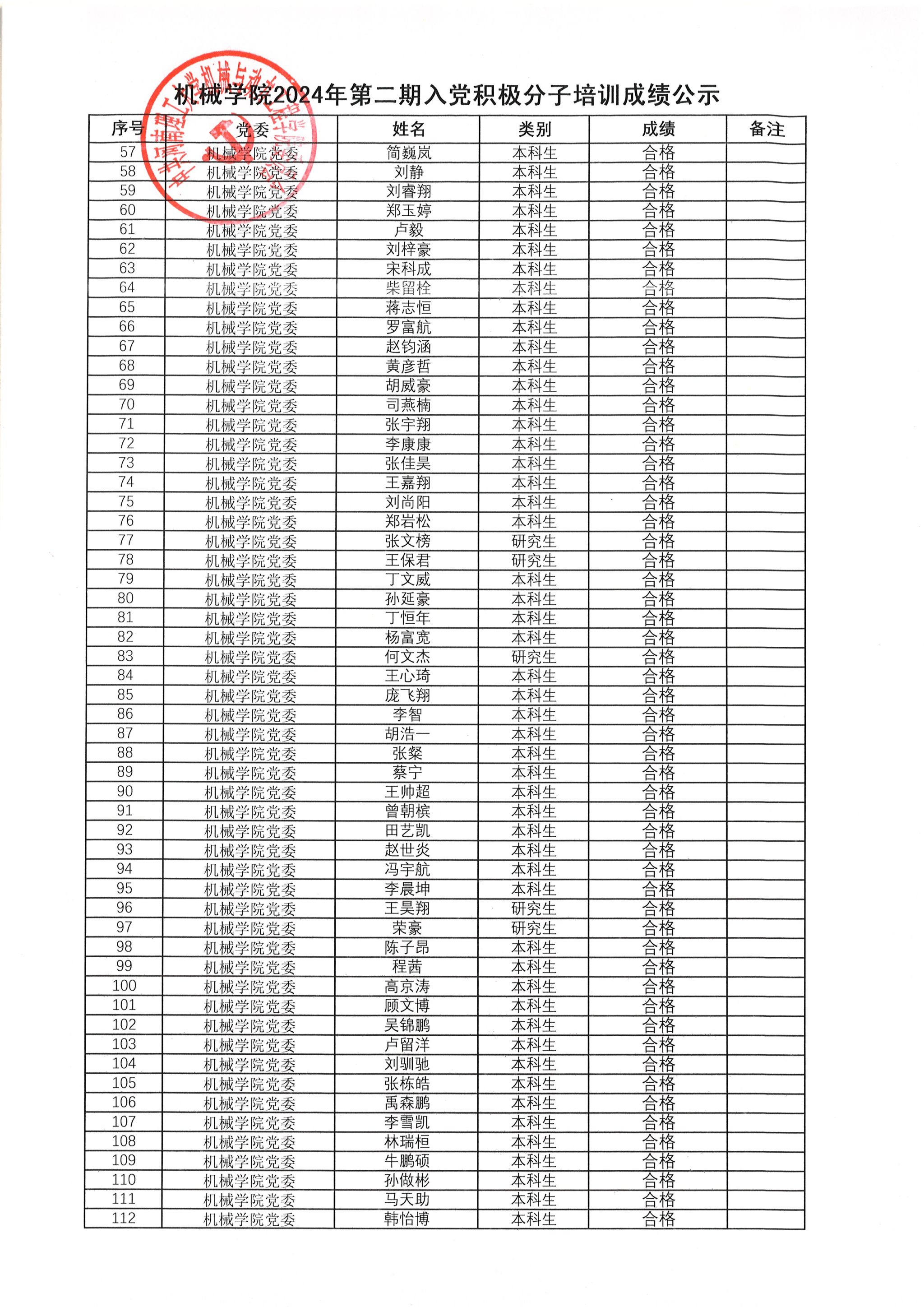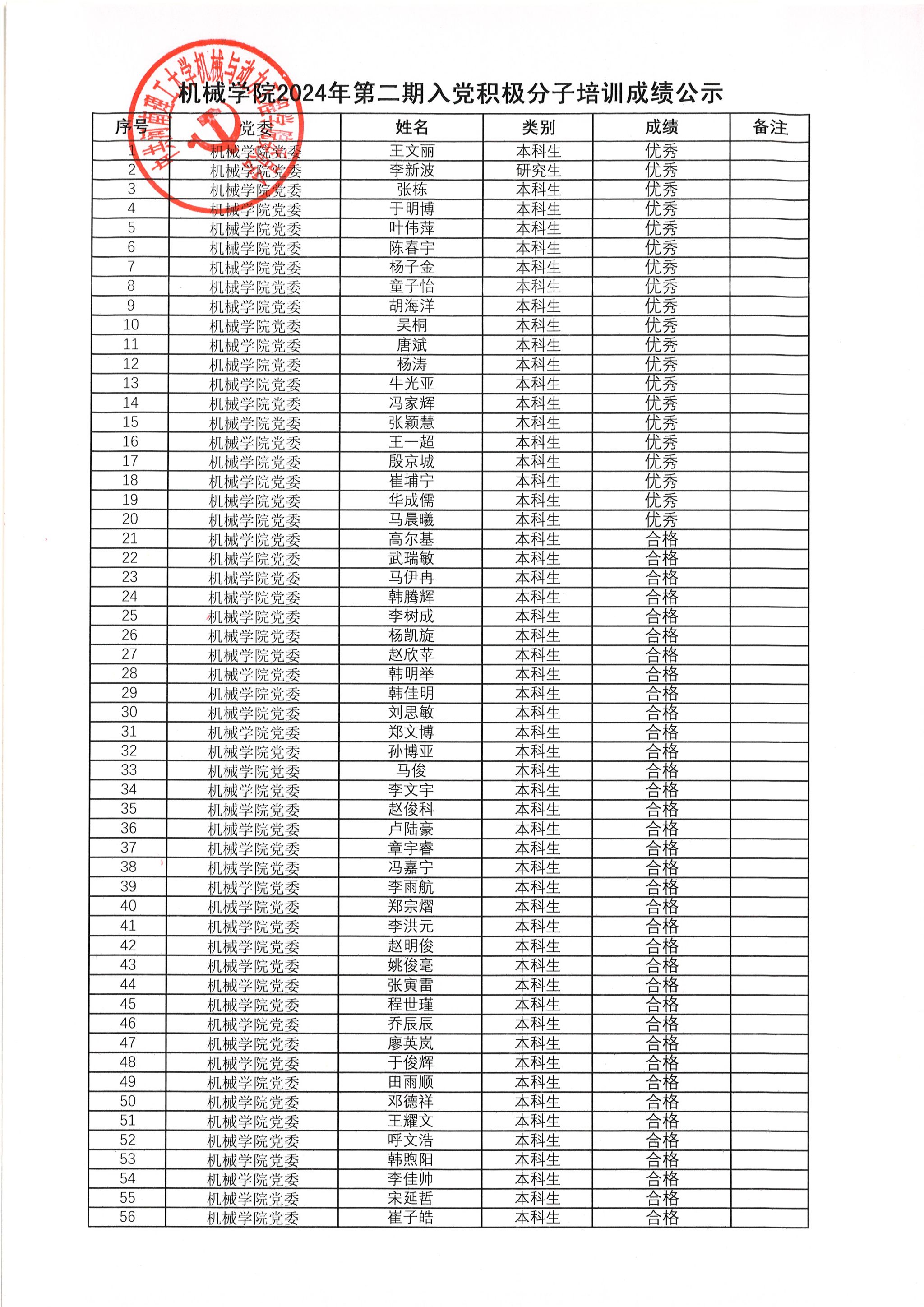 77779193永利官网2024年下半年入党积极分子培训成绩公示