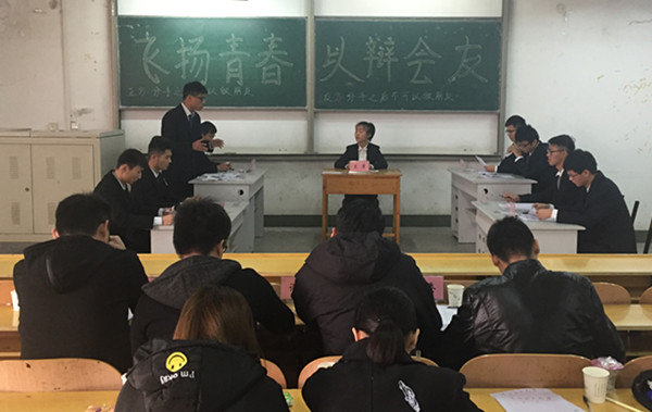 为繁荣校园文化氛围,丰富同学们的课余生活,增强新生对大学的认同与情感, 我院于近期举办了“飞扬青春,以辩会友”新生辩论赛。经过近一周的激烈角逐,8个优秀班级代表队脱颖而出。11月19日上午,辩论赛决赛在院楼305教室如期举行。比赛由院学生会主席团成员和校辩协同学担任评委,近200新生现场观看了比赛。