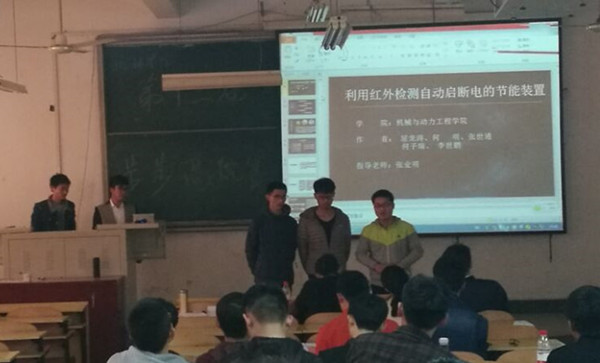 比赛中,各参赛小组利用PPT演示文稿一一展示了作品的灵感来源、工作原理以及未来前景,评委老师们则参照各项目申报书提出了相关问题并与选手们进行了热情的讨论交流,创新的思维激烈碰撞,学术的气氛愈加浓厚。作品展示过后,三位评委老师对各作品一一进行了评述,强调了优势,指出了不足,并提出了后续的改进建议;同时鼓励大家要积极完善作品,力求在校赛中赛得佳绩。下午五时许,长达两个小时的比赛圆满落下帷幕。