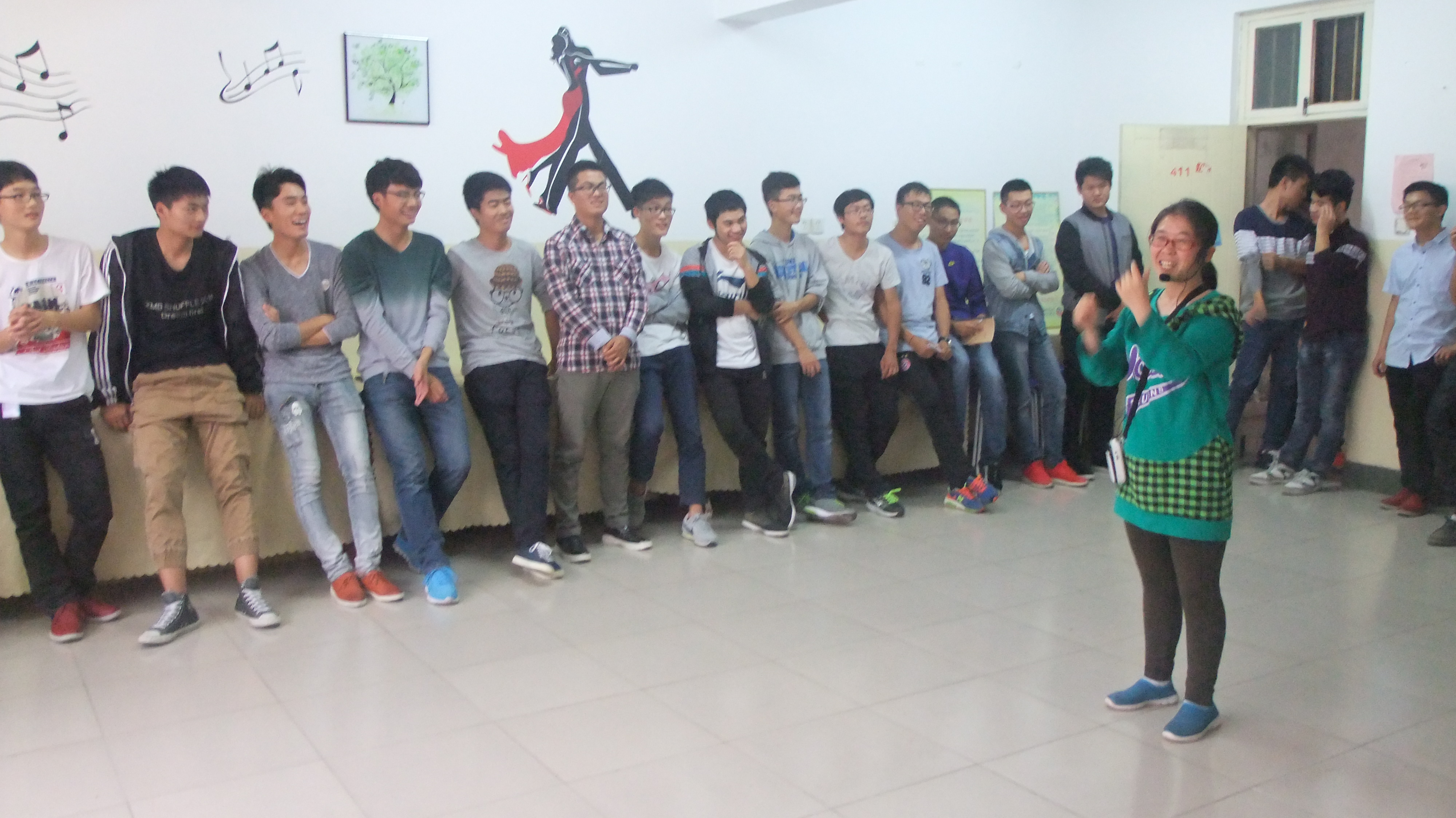 首先开展破冰之旅,杨老师带领大家做了一个热身活动“松鼠与大树”,“松鼠”、“大树”、“地震”,“团结”、“理解”、“合作”,“工作”、“尽心”、“尽力”,在三组口令下活动进行了三轮,落单的同学表演节目,他们唱歌、跳舞、用肢体做26个字母中的一个,男生学女生走模特步、学某种动物走路……欢声笑语充满活动室。